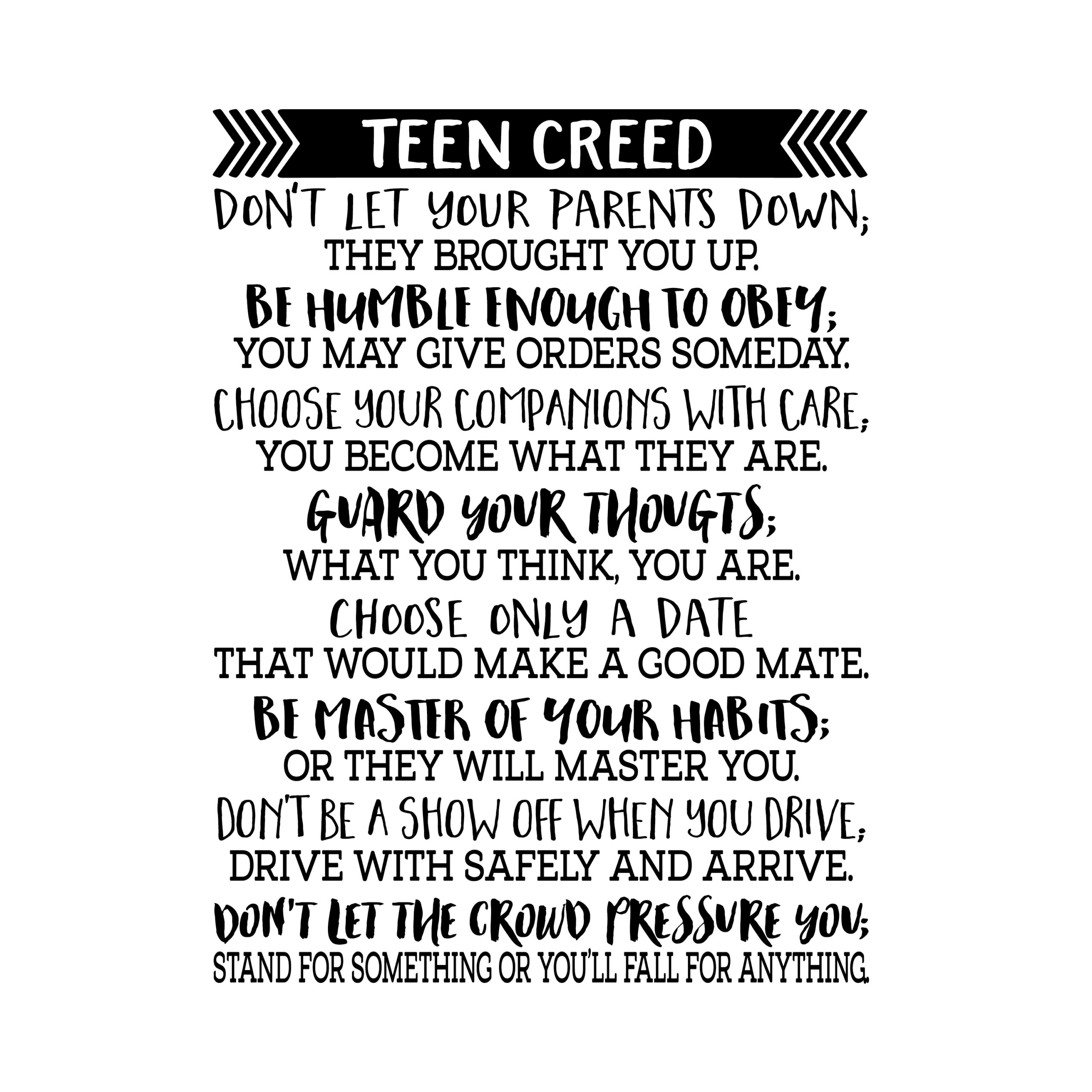 Teen Creed Vinyl Wall Decal